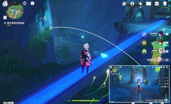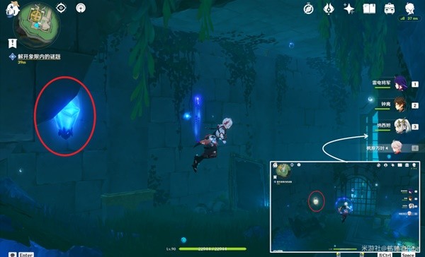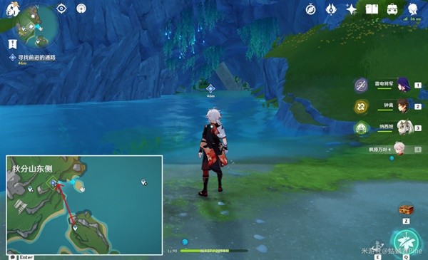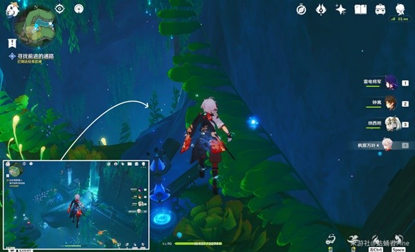 2,顺着河道来到洞窟尽头,过剧情,然后潜到水下(解锁传送锚点),向前继续游进入水下洞窟