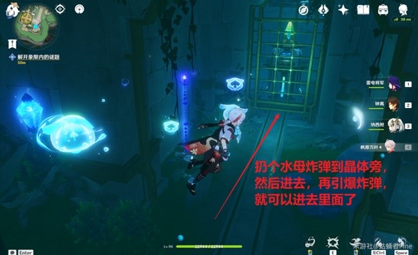 8,之后吸收水母的力量,将水母炸弹扔到晶体旁,再进去第一道门,然后引爆水母即可进入里面房间,启动装置放流