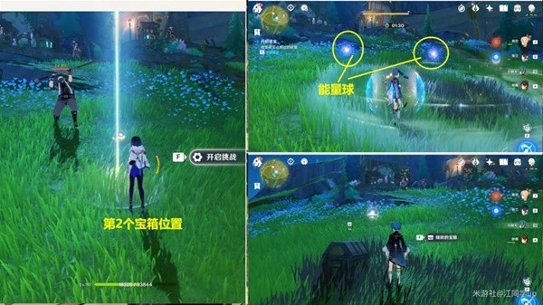 (4)拾取后面3个能量球后,第2宝箱位置就会出现,开启挑战,打完怪,再收集完附近的能量球后,即可挖掘出第2个宝箱了