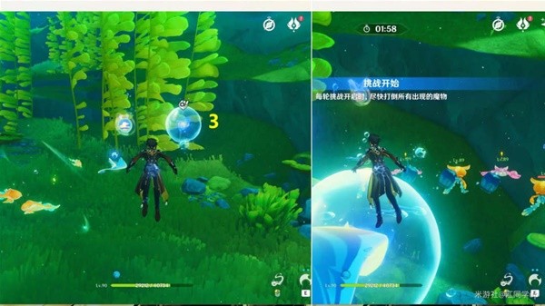(2)到2能量球位置后,可直接开启挑战,也是接着打完【胖胖果】挑战后,即可拾取2能量球了