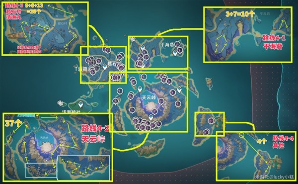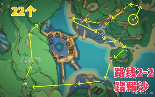 ▶路线5总计:22个(商人葵5个、商人巴巴克5个、npc阿夫辛4个、尘歌壶种植8个)