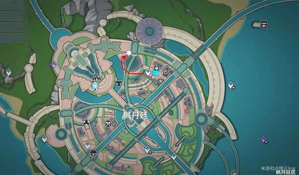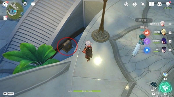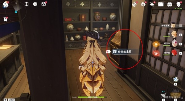 1.按照上图路线,绕到建筑侧面的角落里就能看到华丽宝箱,打开可获得19w摩拉