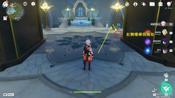 2.走过喷泉后,到达下图门口位置,宝箱位于右侧楼梯拐角处