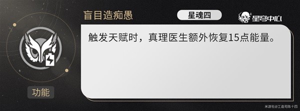 因为星魂4让真理医生每触发2次天赋,即可回能相当于一次战技的能量15+15=30点。