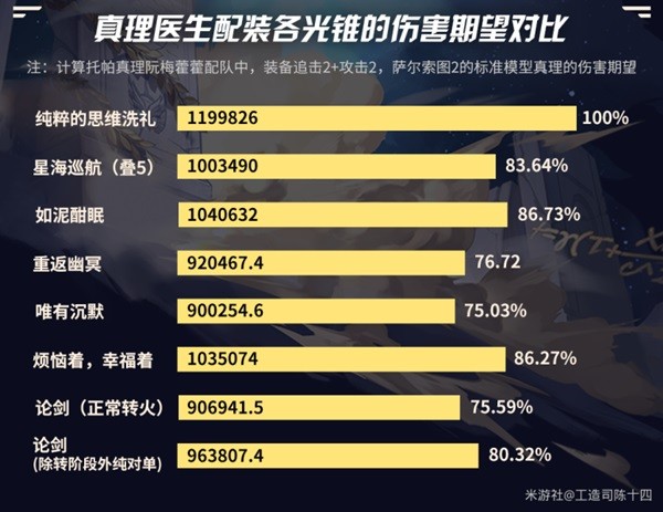 真理医生选择各光锥时的伤害期望对比如表所示:
