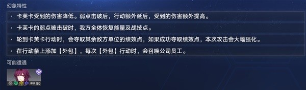 2.击破卡芙卡时,卡芙卡获得易伤,我方全体能量回满,并且回3个战技点