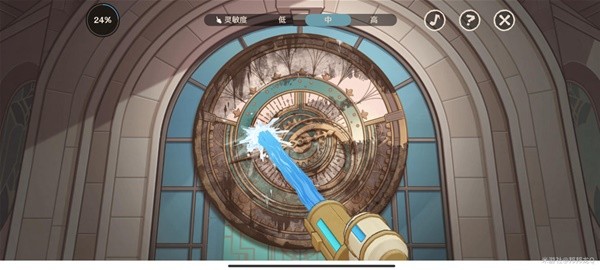 进入关卡点击之后,会把脏的区域显示出来。长按屏幕即可对脏区域喷水清洁,进度在左上角显示。如果手感不好可以在页面上方调整灵敏度。