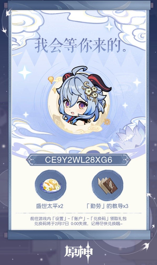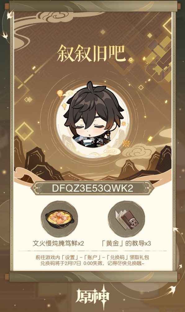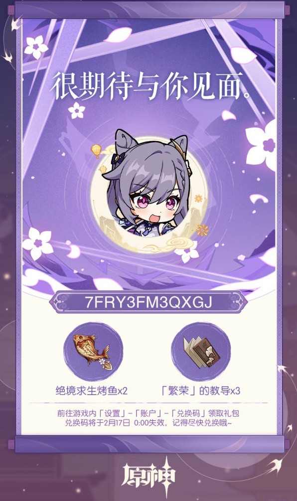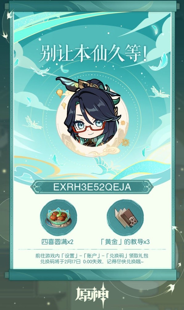 3-兑换码将于2月17日 0:00 失效,记得尽快兑换哦~
