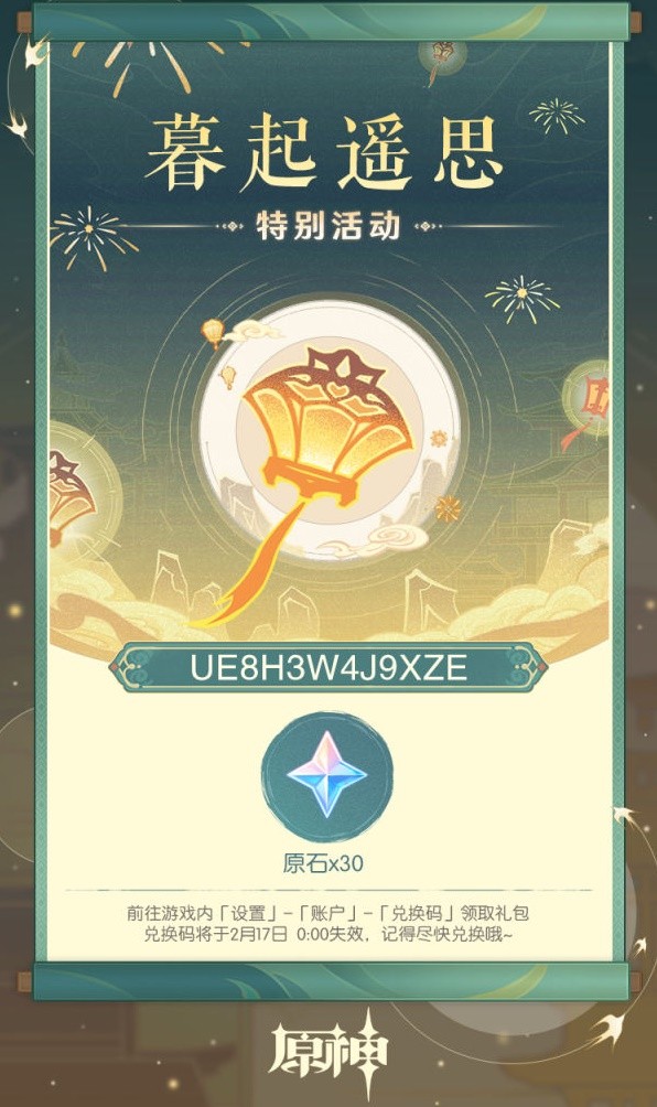 亲爱的旅行者,登录游戏输入下方兑换码即可领取璃月伙伴们赠送的海灯节礼物哦~