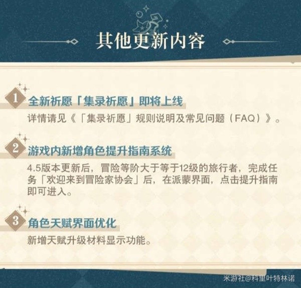 《原神》官方已经召开了4.5版本的前瞻节目,介绍了4.5版本将会上线的玩法内容和新角色千织,并惯例的放出了三个原石兑换码。下面请看由“科里叶特林诺”带来的《原神》4.5版本前瞻节目内容汇总及兑换码分享,希望对大家有用。