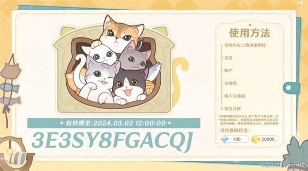 兑换码有效期:截止至03.02中午十二点,兑换要抓紧哦。