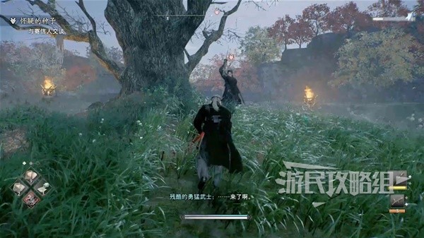 路上遇到两个杂兵可以直接干掉,来到寄信人的位置,结果一言不发就拔刀开战。
