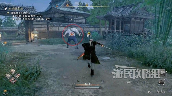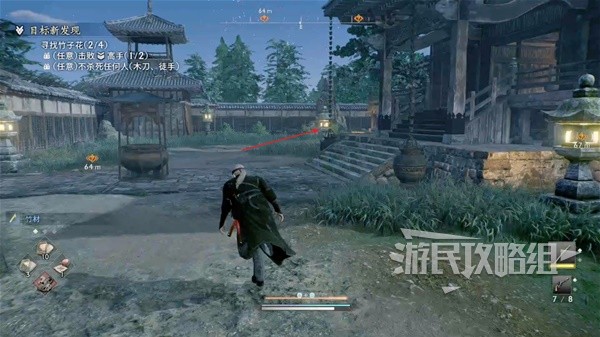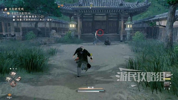 来到目标位置的寺庙,要注意此次任务需要使用拳头或木刀。