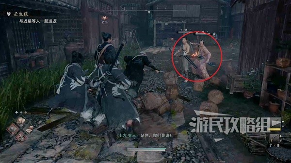随后的路程上会遇到几个认识新选组大哥的人,跟着他们跑进胡同里。