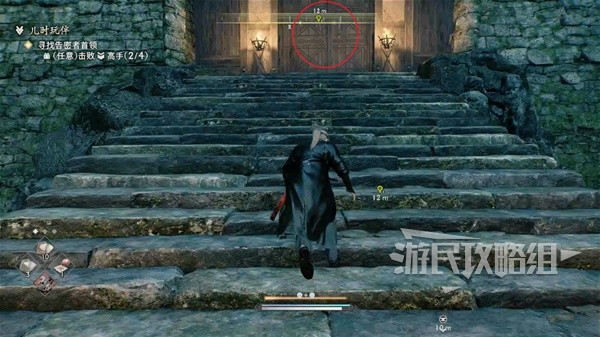 来到画圈小岛击败此地的高手可以拾取大门钥匙。