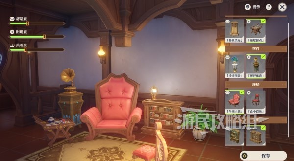 每隔一段时间,右上角提示就会解锁,如果找不到适合的布置可以直接点击提示来查看布置方案。布置方案如下。