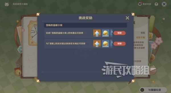 完成任务「猫茸茸城堡」的大大危机后即可开始布置雪糕的温暖小窝。