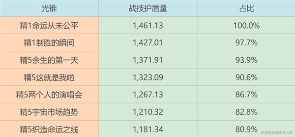 *只计算砂金的战技护盾量,等价于双倍护盾上限,行迹护盾差距比例一样