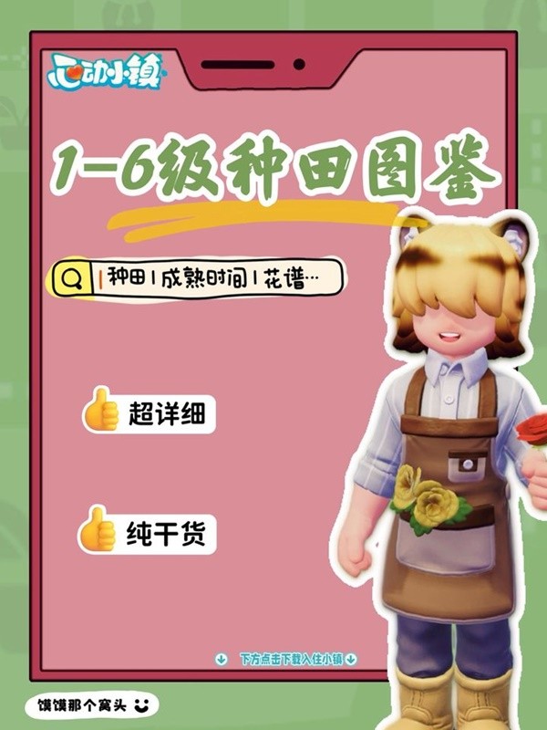 《心动小镇》中包含种田玩法,玩家可以在游戏中种植各种蔬菜。下面为大家带来由“馍馍那个窝头”分享的《心动小镇》1-6级种田图鉴,希望对大家有用。