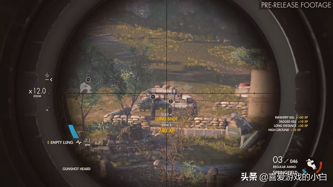 《狙击精英4》是由Rebellion制作的以狙击手为题材的第三人称射击游戏,本系列以真实的狙击体验和独特的击杀体验而为玩家们所津津乐道。本作游戏背景设定为1943 年的意大利,玩家扮演秘密特工Karl Fairburne从法西斯主义的枷锁中解放意大利,并避免盟军反攻欧洲的计划泡汤。游戏采用了开放世界式的游戏流程,我们可以在地图上自由的移动,完成任务的途径也是多种多样。当然狙击还是游戏的核心玩法,正面突突突往往分分钟就教你做人,配合潜行的各种暗杀才是王道。