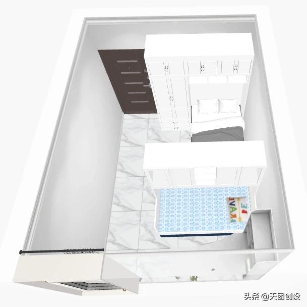 3、空间的不足,对收纳要求比较高。采用壁柜、床柜结合的方式,充分利用空间,以达到满足收纳的要求。