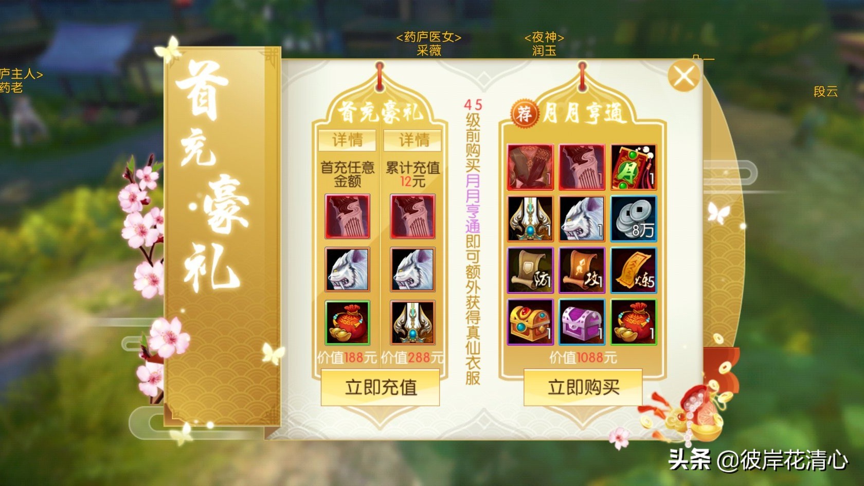 对于新入诛仙玩家来说,最好先充值任意首充,如充值一元就可以获得一个15级+可使用的真仙武器和白虎坐骑,这个真仙武器属性很好可用到至少100级以上。