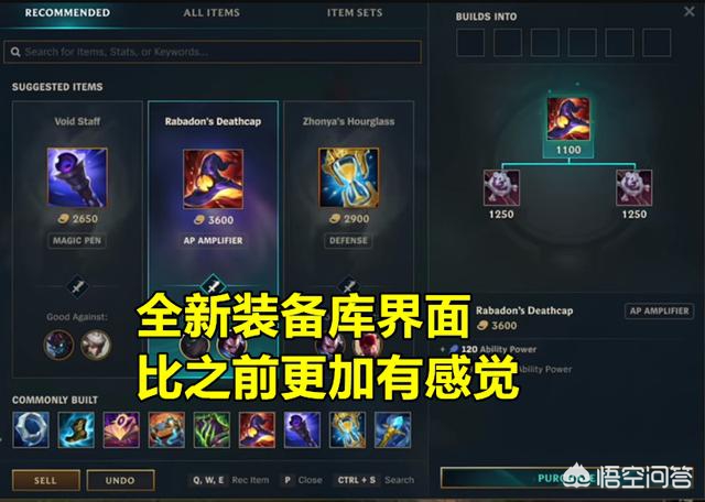 其中最值得一提的就是英雄联盟的装备库了,装备商店页面得到了全方位升级,整体显示效果变得更加直观。老版的装备商店中的"推荐装备"系统是一个十分鸡肋的功能,因为这个系统推荐的出装往往极大落后于版本,而且长期不更新,根本不适应当下的玩法。许多新手受到了误导,导致对装备的理解始终存在缺陷,屡屡"坑"害队友。新版的"装备推荐"系统变得更加灵活,它会依据高水平玩家的出装来评测推荐度,变得更加科学且灵活。