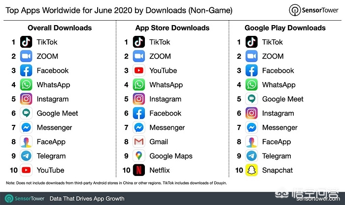 2020年6月,全球非游戏类应用下载量榜单的前十是谁