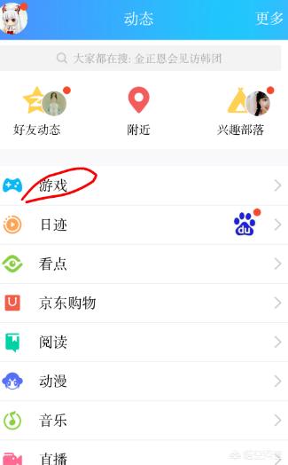 1、首先打开QQ后进入动态选择“游戏”功能,如下图所示: