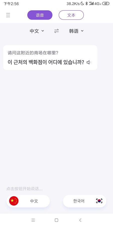 去韩国旅行但是不会韩语,我推荐一个之前我去韩国时使用的翻译软件“语音翻译器”,支持中韩语语音翻译和文本翻译两种翻译模式,尤其是语音翻译功能特别好用,可以进行中韩语语音互译功能,也就是与韩国人对话翻译。