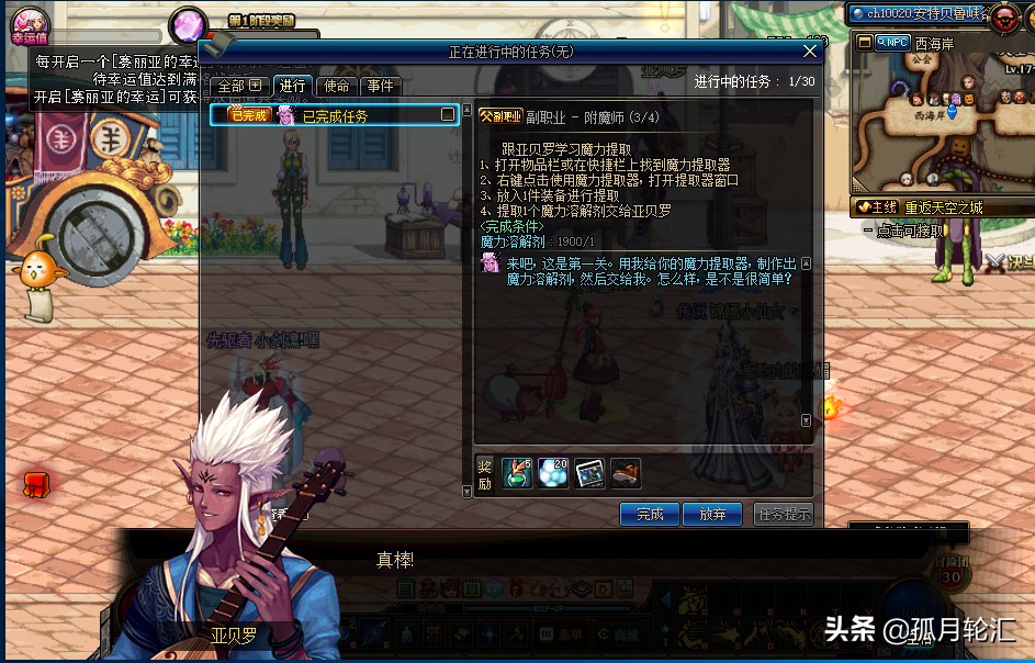 在副职业商店内购买蓝色魔力的产物,其次准备3000个魔力结晶和3万个蓝色小晶块,然后点开副职业,生产蓝色魔力产物,开始的时候一次只能生产10个,不过随着附魔等级的升级,到达3级后每次就可以生产100个,一直做这个蓝色魔力产物就可以了,做满2000多个就能将1级的附魔师升级到满级了。升级一个满级附魔师的时间大概只要10分钟左右!大约只需要100万金币左右就可以升级到满级。然后再去亚贝罗副职业商店购买魔力提取器设计图,依次将魔力提取器升级到满级。这样就可以提取地下城中掉落的装备,这边建议提取异界装备,一件异界装备可以提取8个魔力溶解剂和8个金色小金块。最后愉快的上架拍卖行!