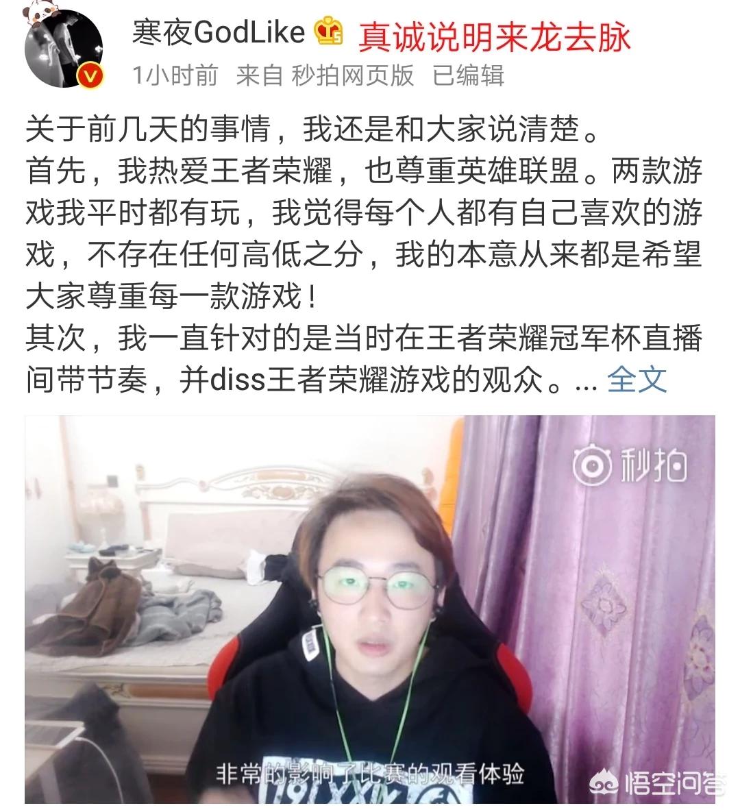 《王者荣耀》教练寒夜发文道歉引众多职业选手力挺,对此你怎么看