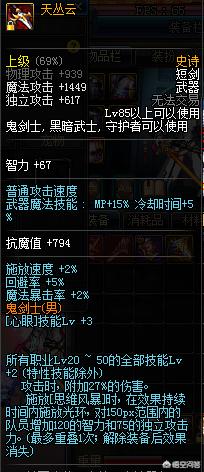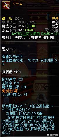 天丛云作为85级的史诗武器,所有职业20~50技能+2,适合所有鬼剑士的BUFF换装武器,对于修罗来说就是两级杀意波动和3级的心眼的加成,对修罗的buff和被动都有很大的提升,杀意提升3%的技能攻击力,心眼提升3%暴击伤害增加量,附加27%的伤害,虽然和装备之间有稀释效果,但还是有20%的提升!