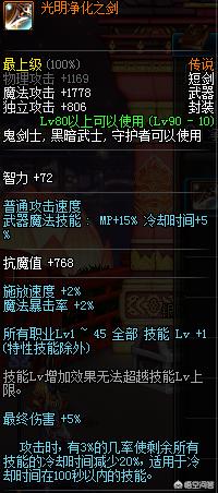 净化之剑:72智力,806独立攻击力,1-45技能+1,5%最终伤害,以及减少20%技能冷却时间(25秒cd)