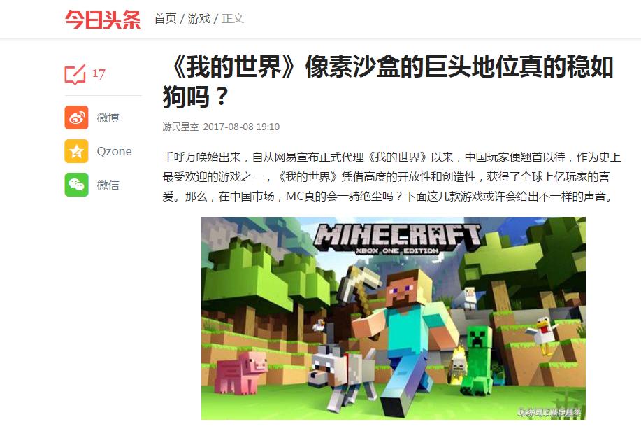 《我的世界》这个被称为“唯一能和农药抢夺小学生资源”的游戏在巨大的关注和期待之下终于和我们见面了!最近,围绕《我的世界》上线的话题可谓铺天盖地,而其中躺枪最多的居然是《方舟:方块世界》?