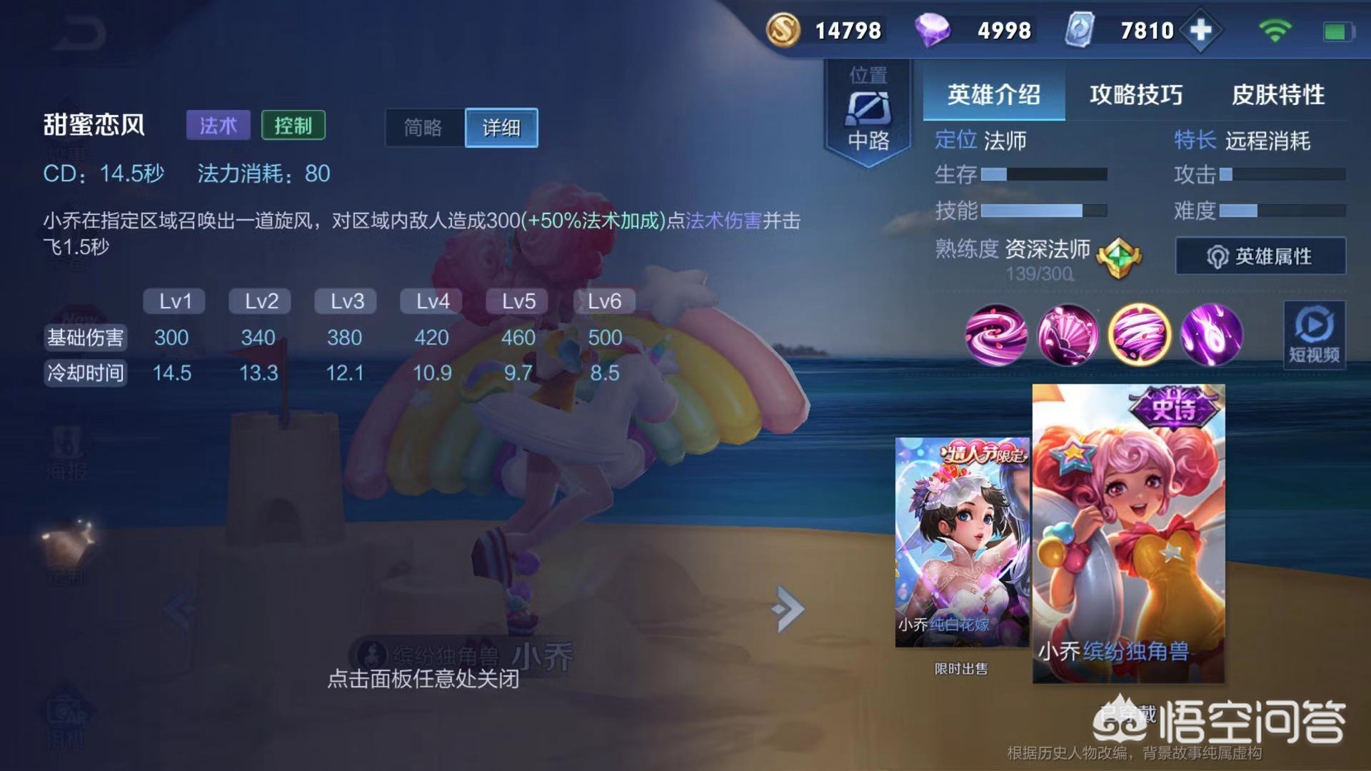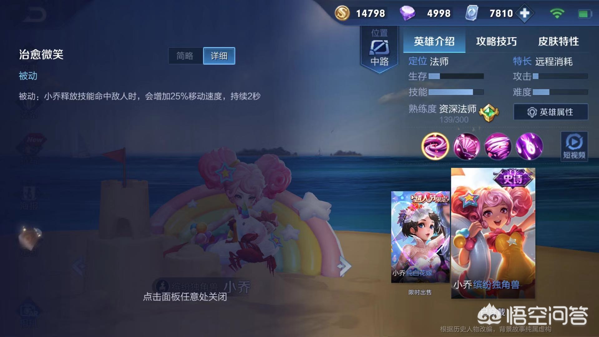 4.适合使用小乔的段位:个人觉得钻石以上,王者低星的局,小乔在S14还是有一战之力的。因为小乔的1技能CD短,手长,所以小乔的消耗能力特别强,后期神装的小乔大招爆发能力还是很强的,不过由于小乔的大招是递减伤害,而且只能攻击敌人四次,只有第一次是100%伤害,后面的三下都是50%的伤害。所以入场时要注意敌人的血量情况。