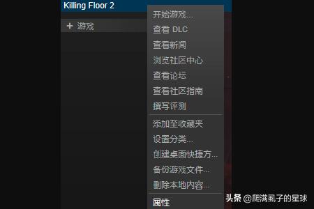 3、在steam找到KF2,然后右击,点击【属性】,然后点击常规-设置启动选项