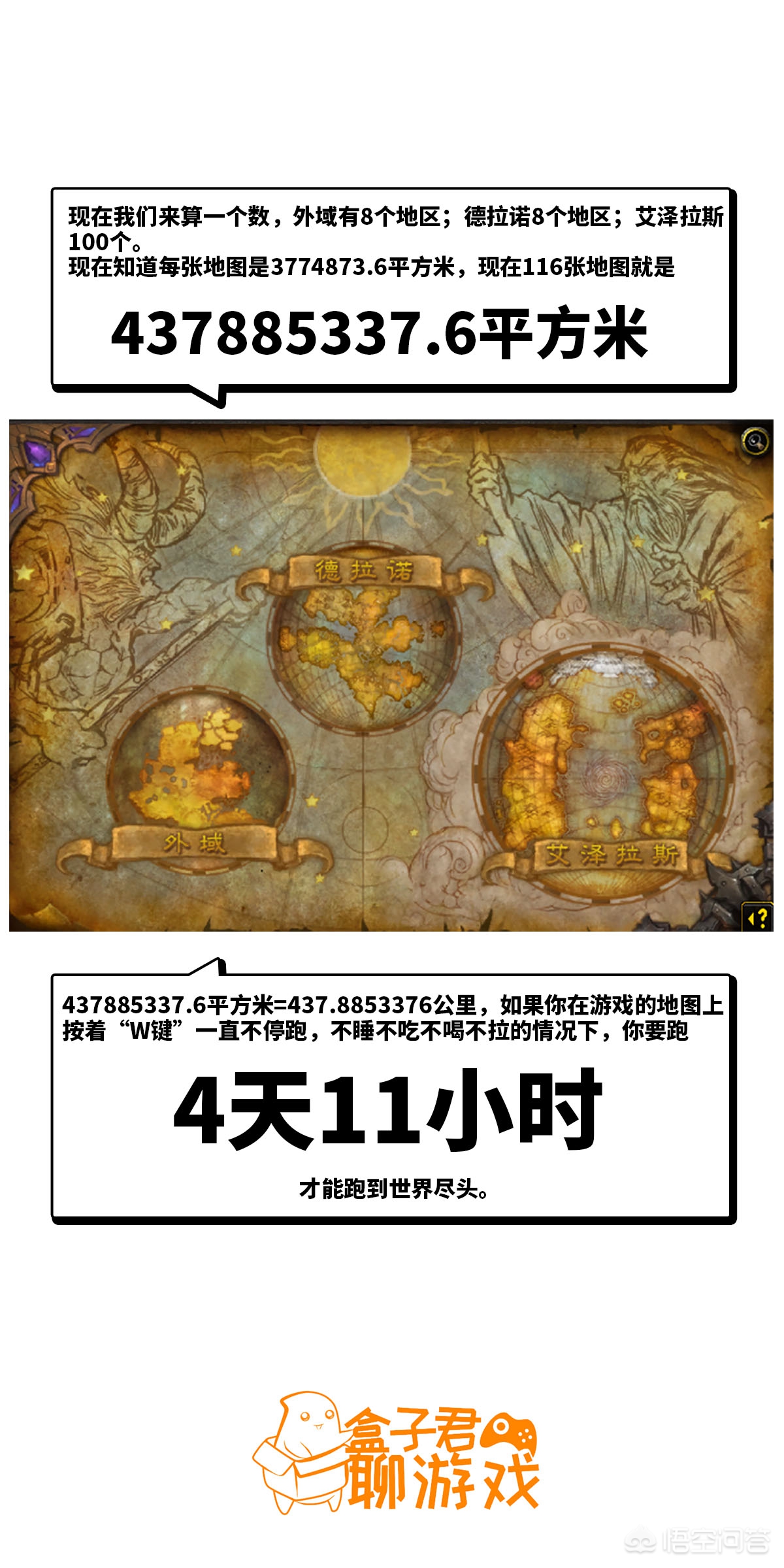 最后的结论是魔兽世界的地图面积为438平方千米。