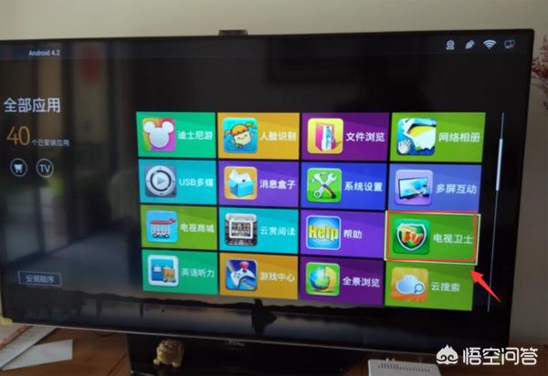 2、将U盘连接电视,在应用里打开自带的电视卫士,然后选择软件管理—软件恢复,找到当贝市场点击安装即可。