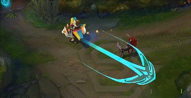 第二款是库奇的柯基号,也是个人最想入手的皮肤。这款皮肤库奇的坐骑变成了一支呆萌的柯基,背影可爱值达到满分。回城动作非常可爱,库奇往天空中扔骨头,然后柯基飞起来吞掉,这波互动真的戳爆萌点啊。Q技能爆炸会有一个星星的特效,看起来也非常醒目。E技能变成了彩虹的颜色,大招是一枚蓝色的导弹,萌属性很强。