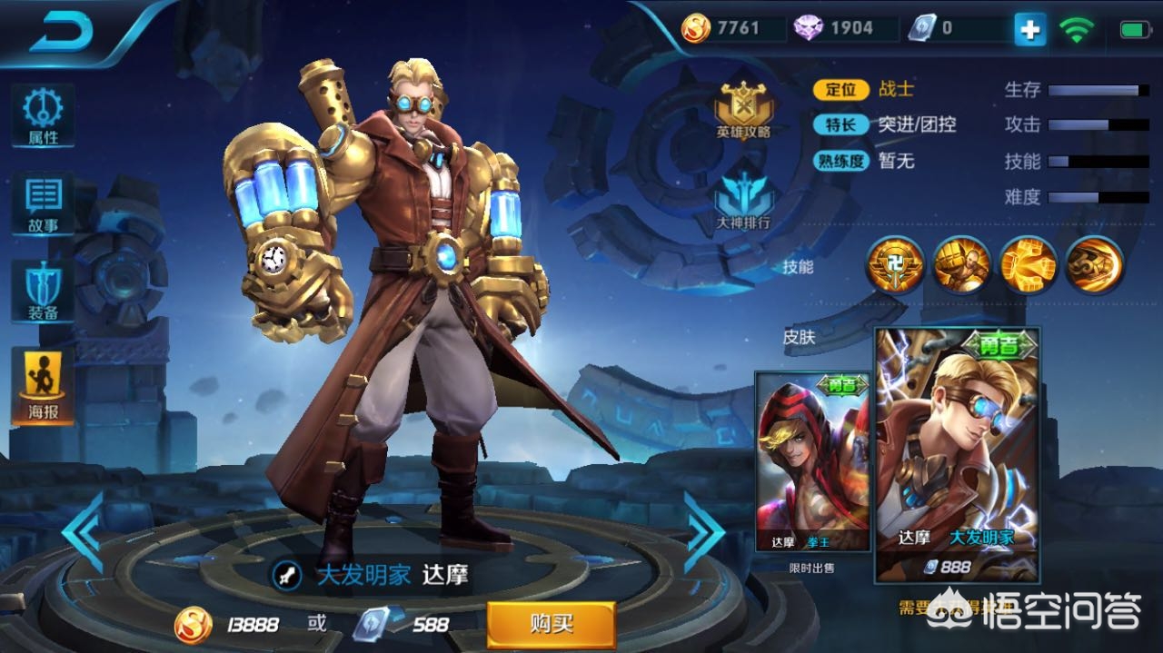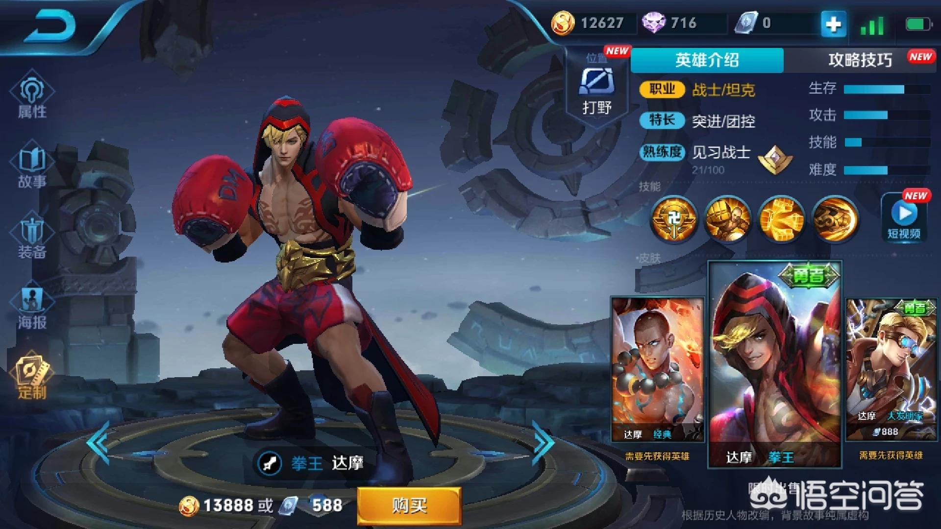 曾经关注过一个主播主玩打野达摩,作为一个有恢复有控制有位移的战士,达摩的表现可圈可点,不过自从上次挨刀之后,变成了达短短,强势不再。达摩作为一个不是非常热门的英雄,它的皮肤,真心是少,一共就两款:拳王,发明家。很奇怪,怎么没有288的伴生皮呢?