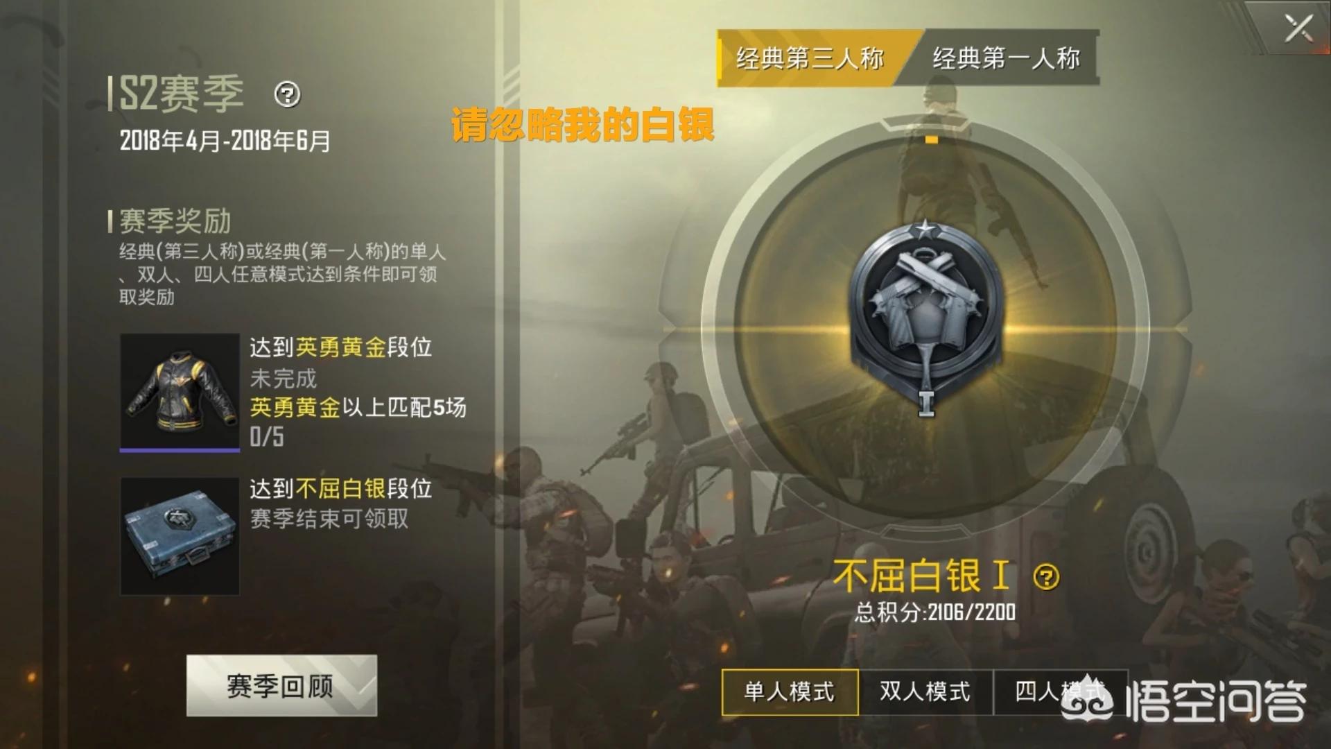 取俩个经典之中最高段位来领取奖励,下面还有赛季回顾又是从开始历程分析的吃鸡经过
