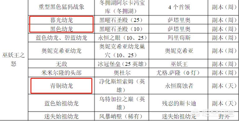 上图是WLK版本的一份副本及野外坐骑掉落列表,可以根据自己的喜好来选择去刷哪些副本,其中红色框中的坐骑为必掉坐骑,如果是收集控的话,一定要去刷。