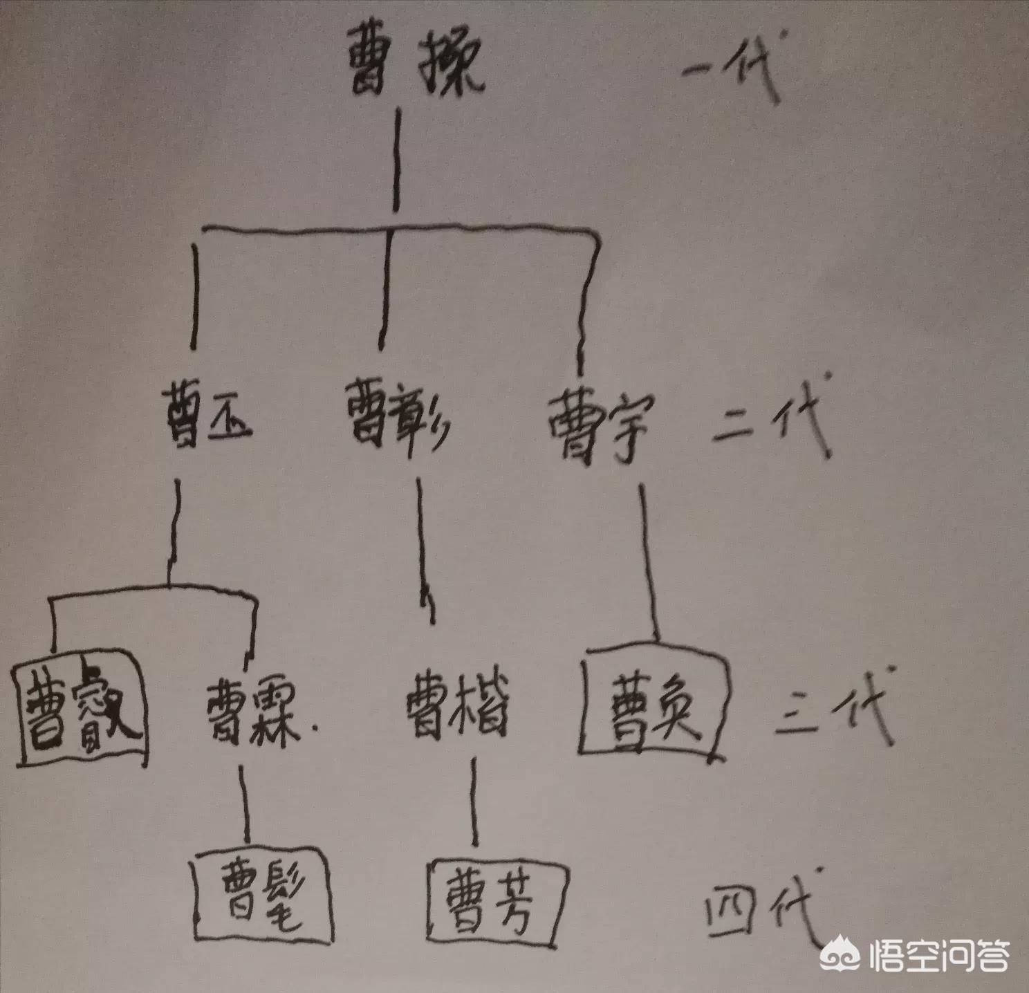 按照这个关系来看:曹叡和曹奂是堂兄弟,曹芳和曹髦是堂兄弟;曹叡是曹芳的养父,曹髦的伯父;曹奂是曹芳和曹髦的堂叔父。