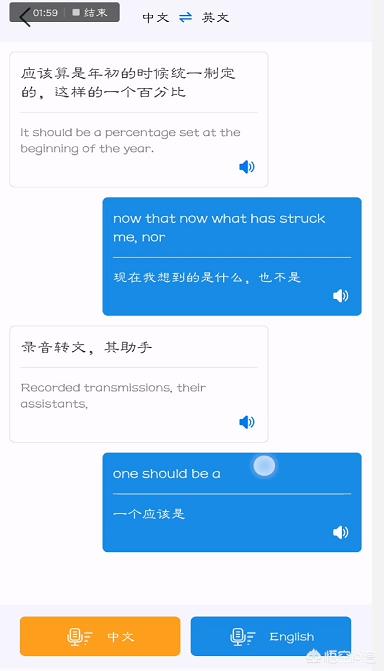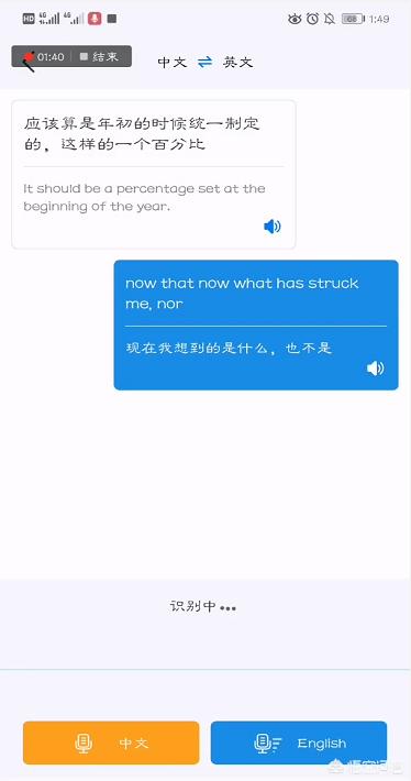点击需要的转换比如需要中文转英文就点击中文的按钮,想要英文转换成中文就点击英文的按钮。点击之后就可以直接说话,转换的结果也会同步的显示出来。