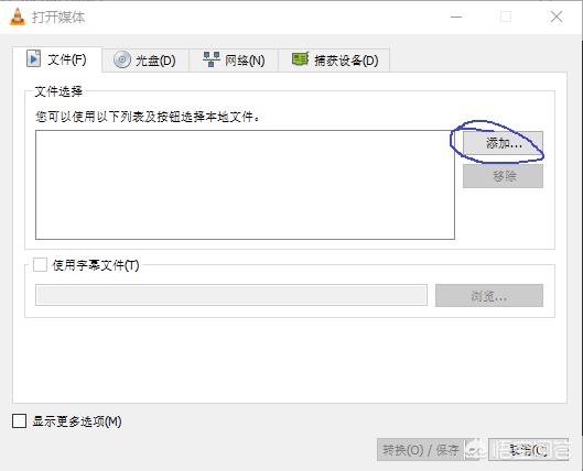 (2) 点击添加,选择要转换的文件—点击最下面“转换/保存”按钮,进入下一个界面。