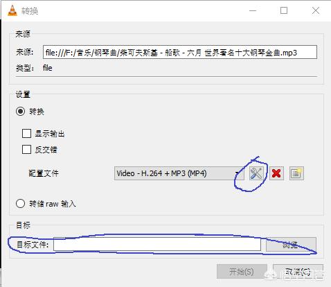 (3) 点击那个小扳子,设置要转换成的格式(或点击左侧的小三角形也能选择)—点击“浏览”—选择一个文件输出位置,并在“文件名”位置,设置一个文件名。