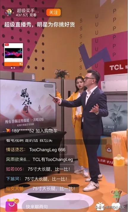 基本上是和媳妇一起全程看完直播,边听超级秀的推荐,边在京东上看他们推荐东西的评价,最后入手了TCL量子点电视,已经到货几天了,画面清晰,色彩饱和,亮度高于一般液晶电视,音质也特别棒,很不错。