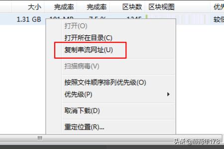 3、拖入后会自动地下载文件,在下载栏这里右键选择复制串流。