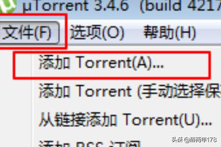 2、进入uTorrentPortable后,找到“添加torrent”一项,点击进入